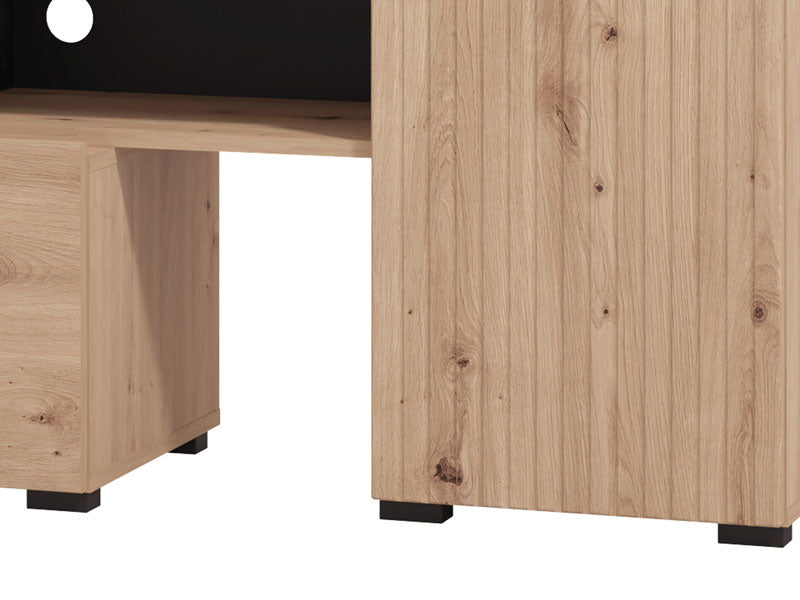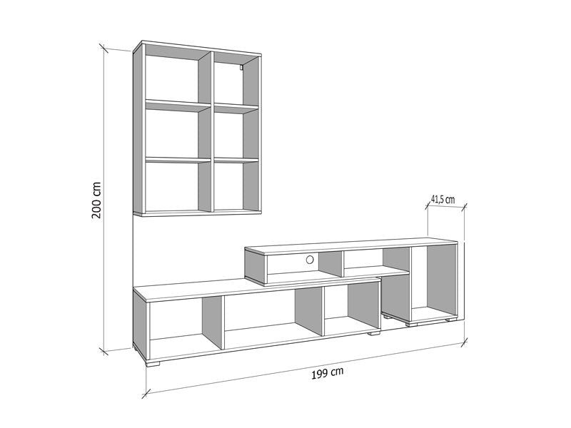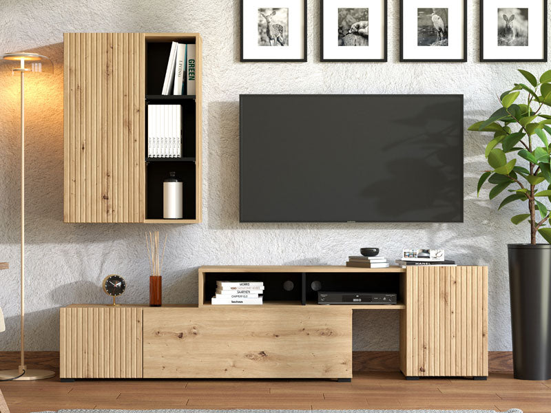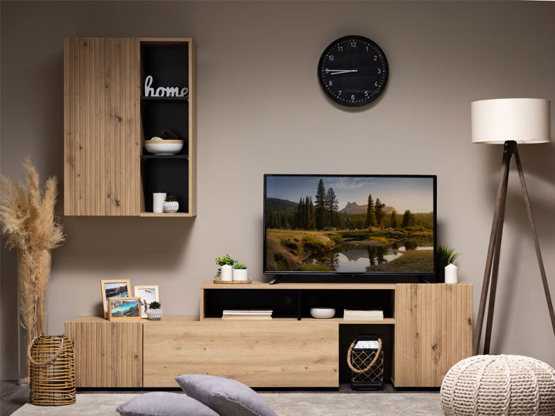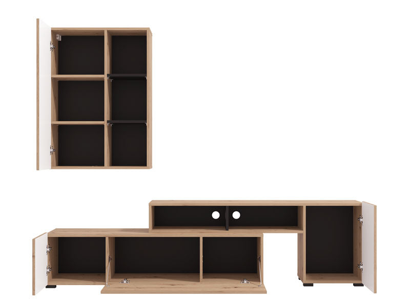 BALOS е за хора с отношение към подредения, уютен дом и естествените, изчистени тонове. Организирайте ТВ техниката в ниския модул, използвайте високия шкаф за скрито съхранение, а откритите ниши – за любими акценти. Резултатът е елегантна холна зона, която изглежда подредено и модерно всеки ден, дори в ограничено пространство.