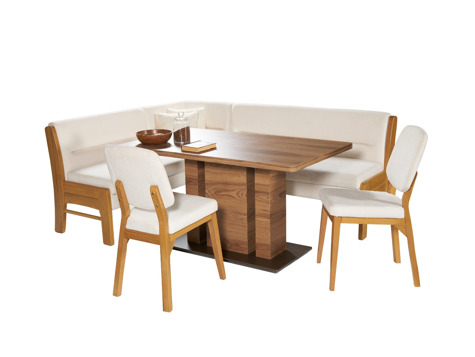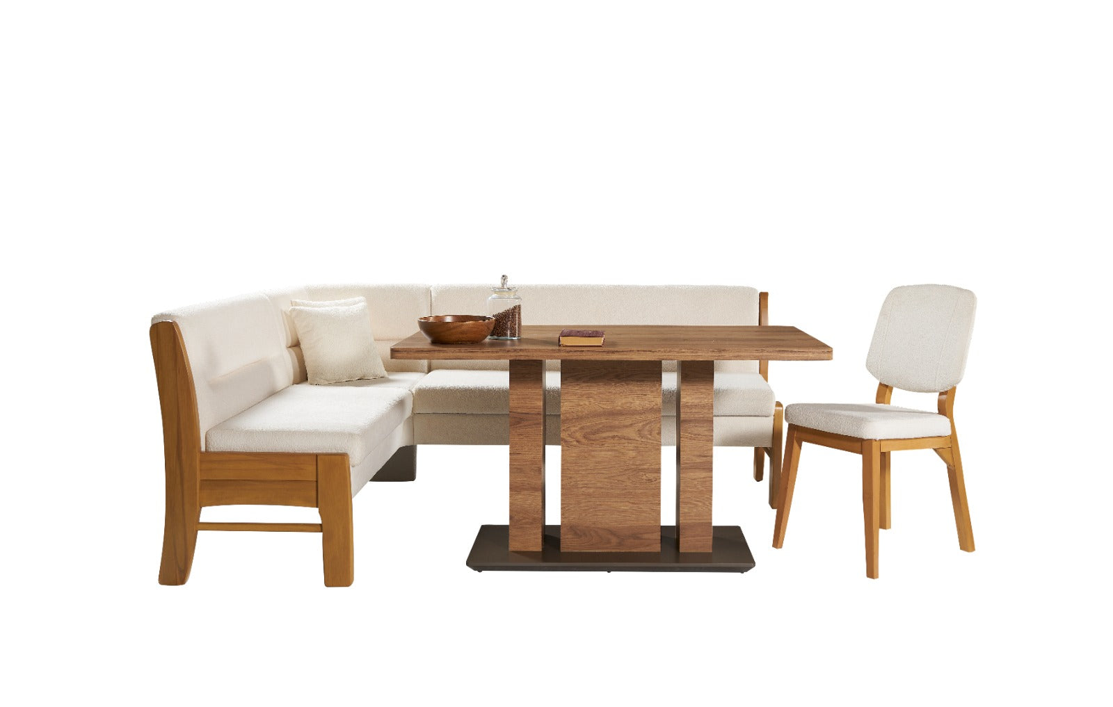 BIEN е идеален за домакинства с особено отношение към интериора, които предпочитат по-тъмни дървесни нюанси и минималистична естетика. Подходящ е за ежедневни събирания на семейството, както и за посрещане на гости. Топлите тонове и изчистеният силует превръщат комплекта в стилен акцент, който носи баланс и уют във всяка кухня или трапезария.