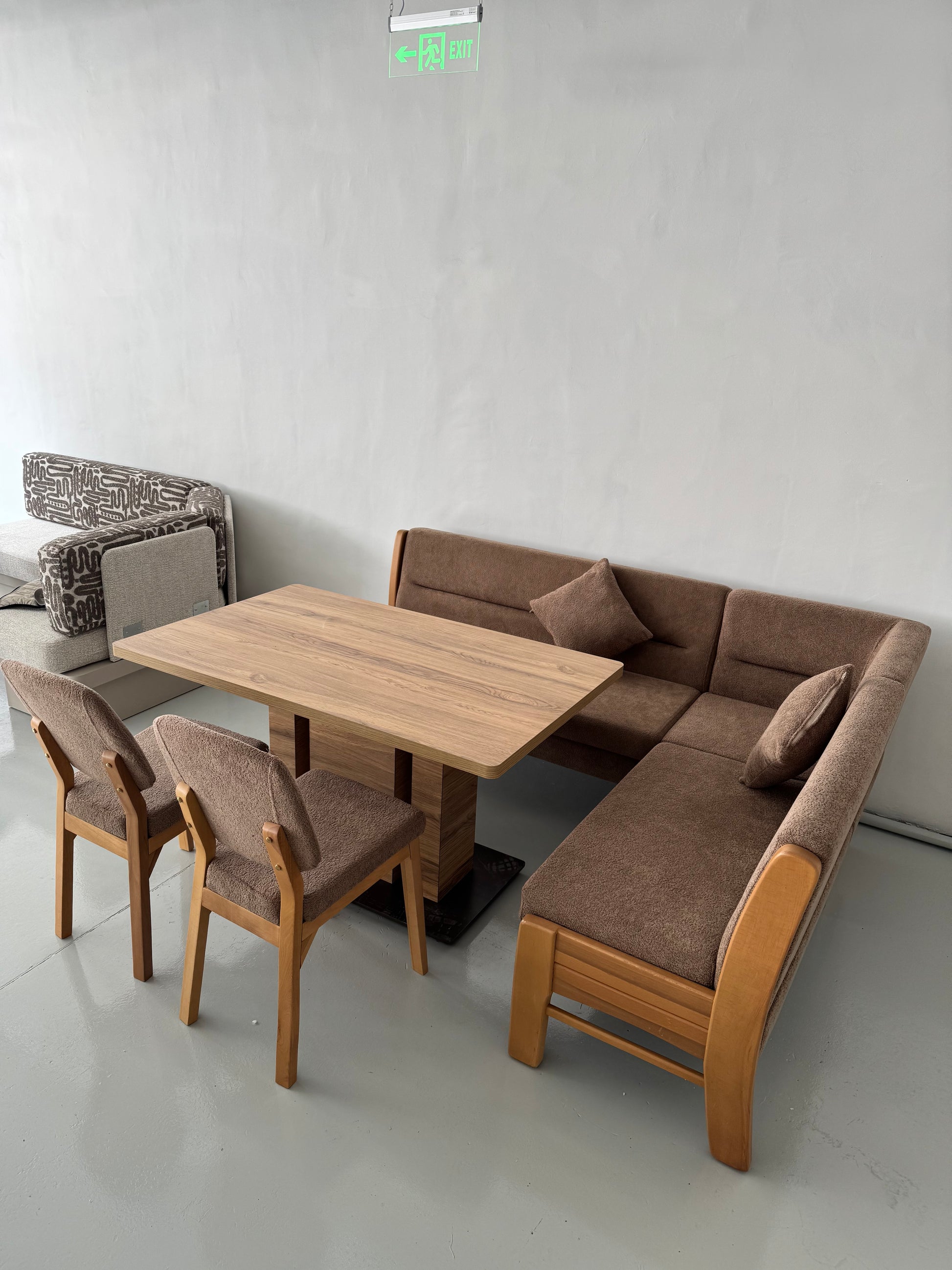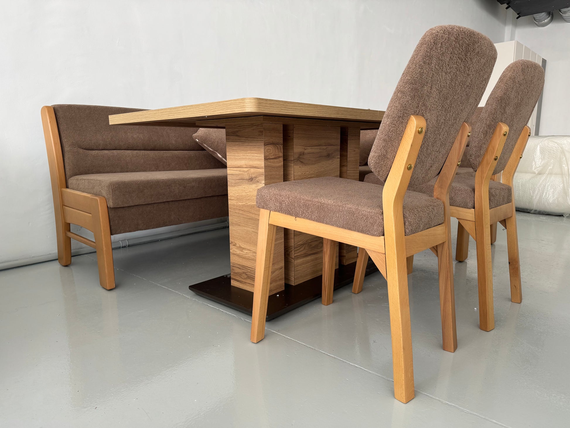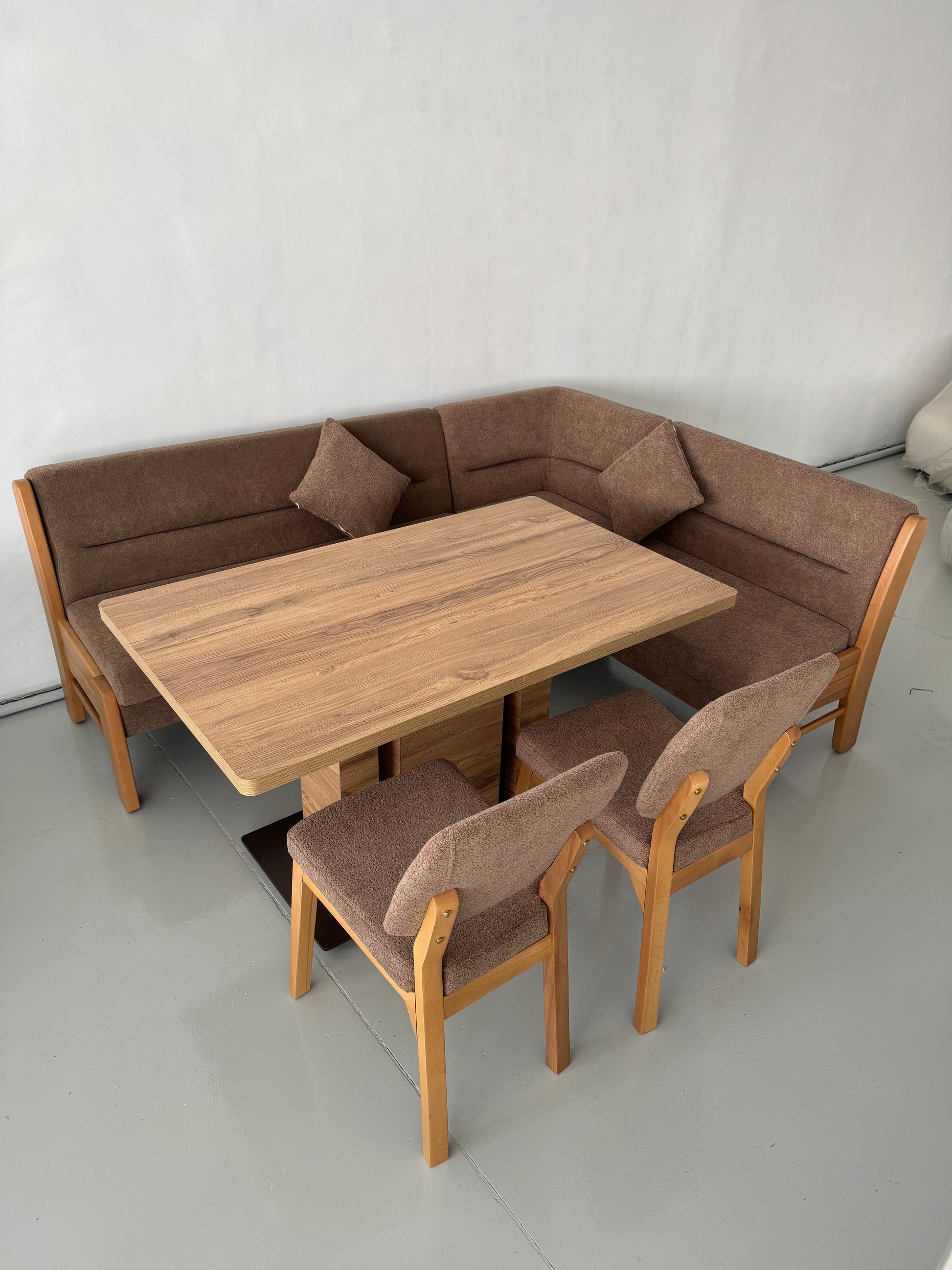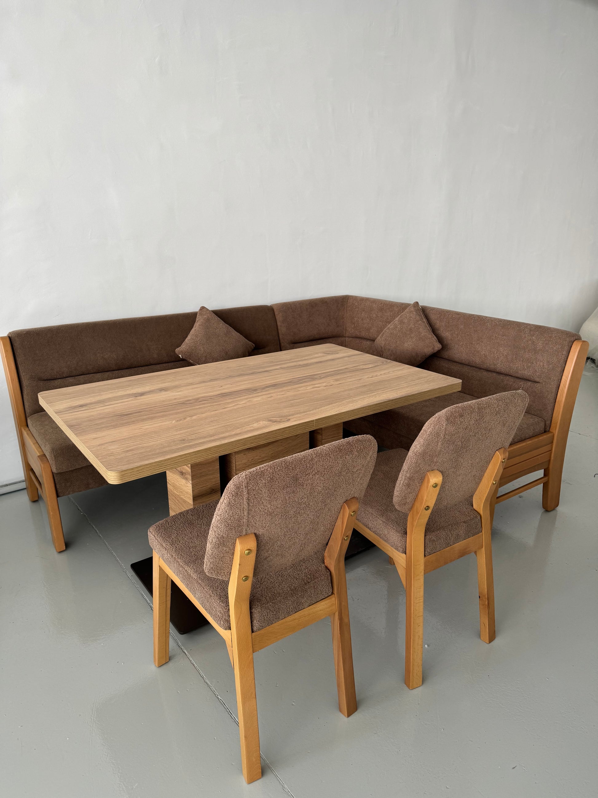 Кухненският ъгъл BIEN съчетава практичност, комфорт и изчистен дизайн. Създаден е за хора, които ценят топлата, светлокафява естетика и искат трапезарията им да излъчва хармония и елегантност – всеки ден и при специални поводи.