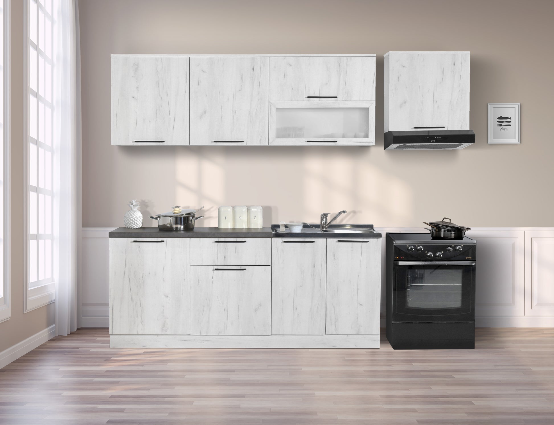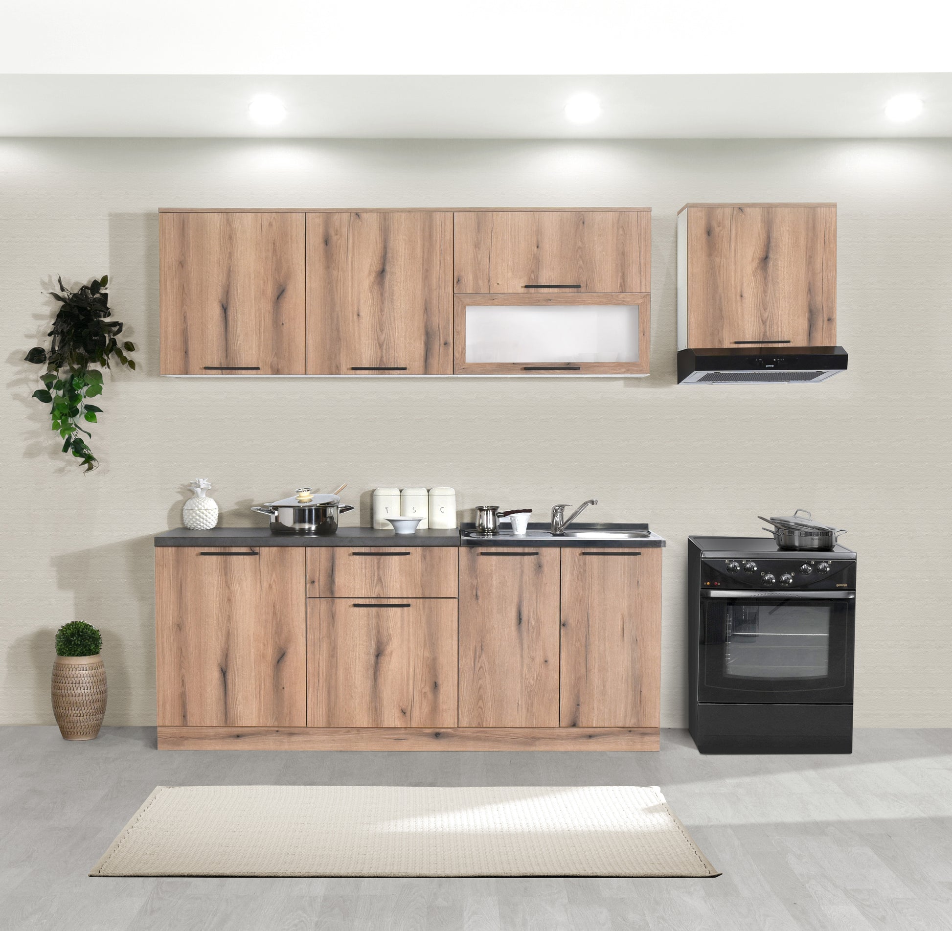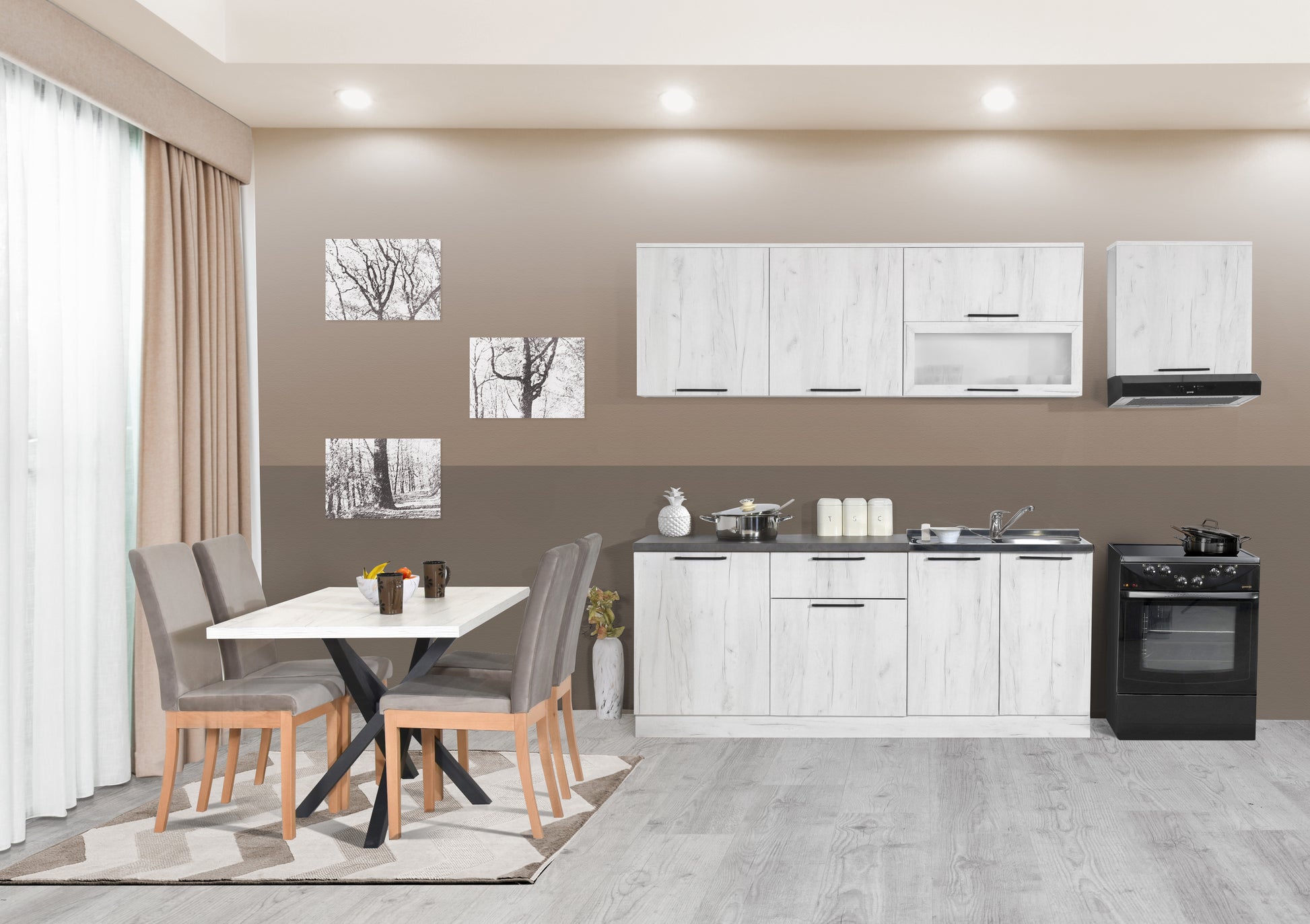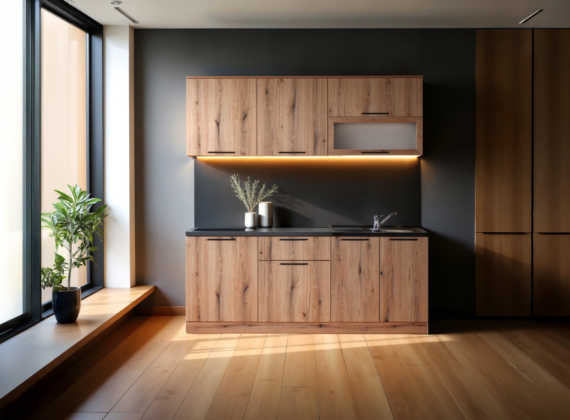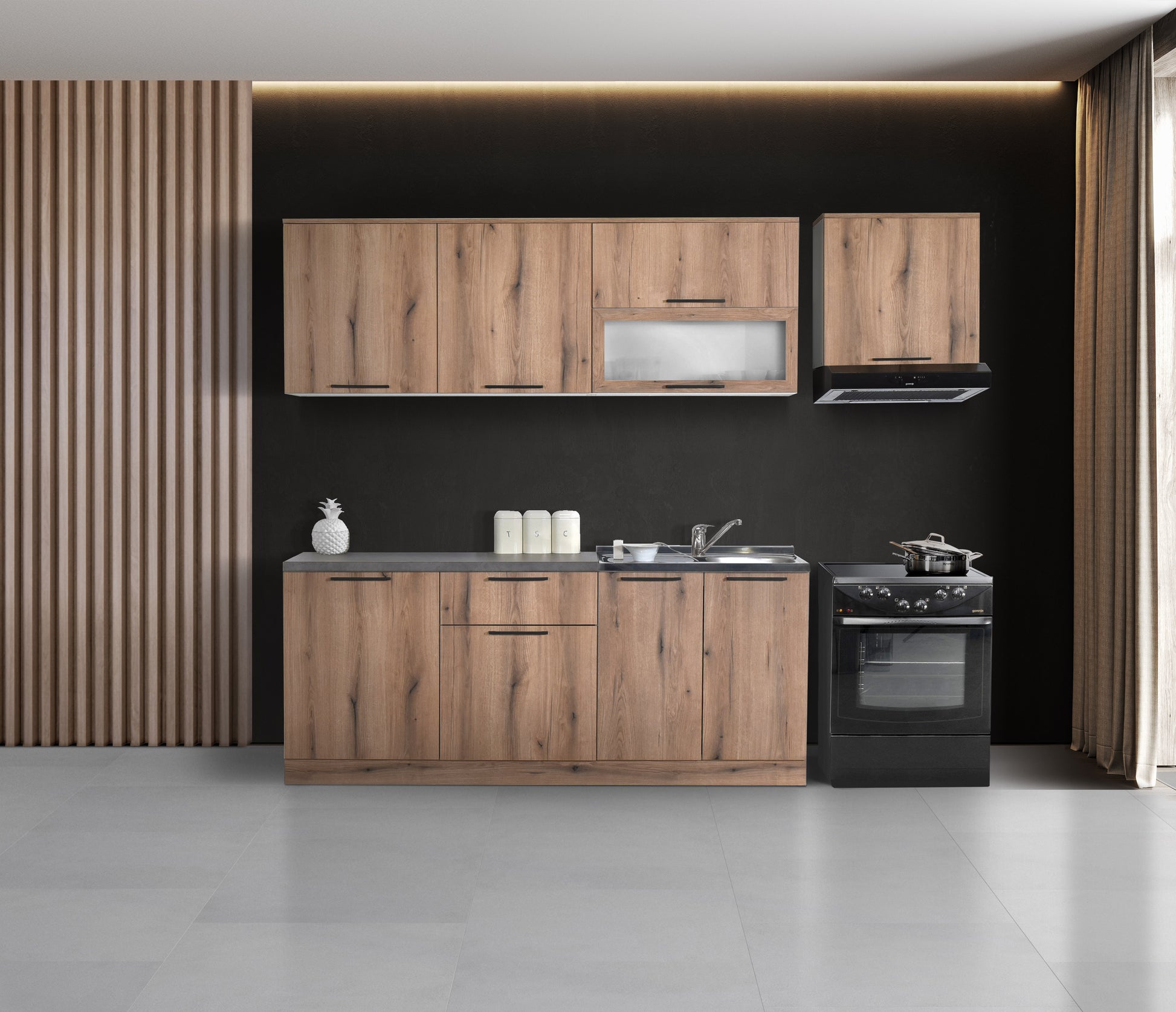 Модулната кухня Comfort 200 в антрацит комбинира чисти линии, топли дървесни нюанси и функционално разпределение. Създадена е да превърне дори най-малкото пространство в практична, подредена и впечатляващо стилна кухня.