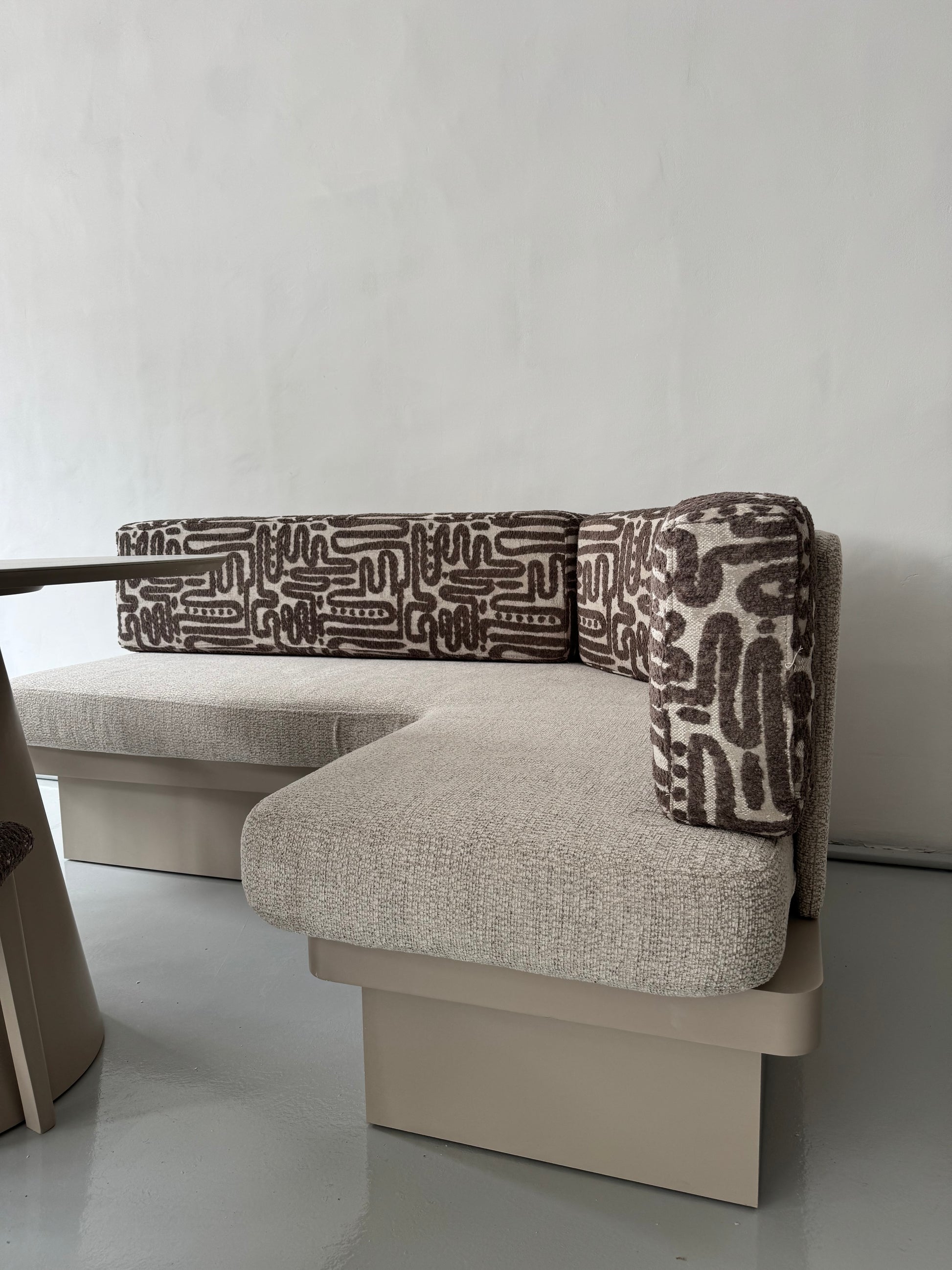 Мека мебел (ъгъл) | Широчина: 190 см · Височина: 85 см · Дълбочина: 140 см | Цвят: екрю с тъмнобежови елементи |