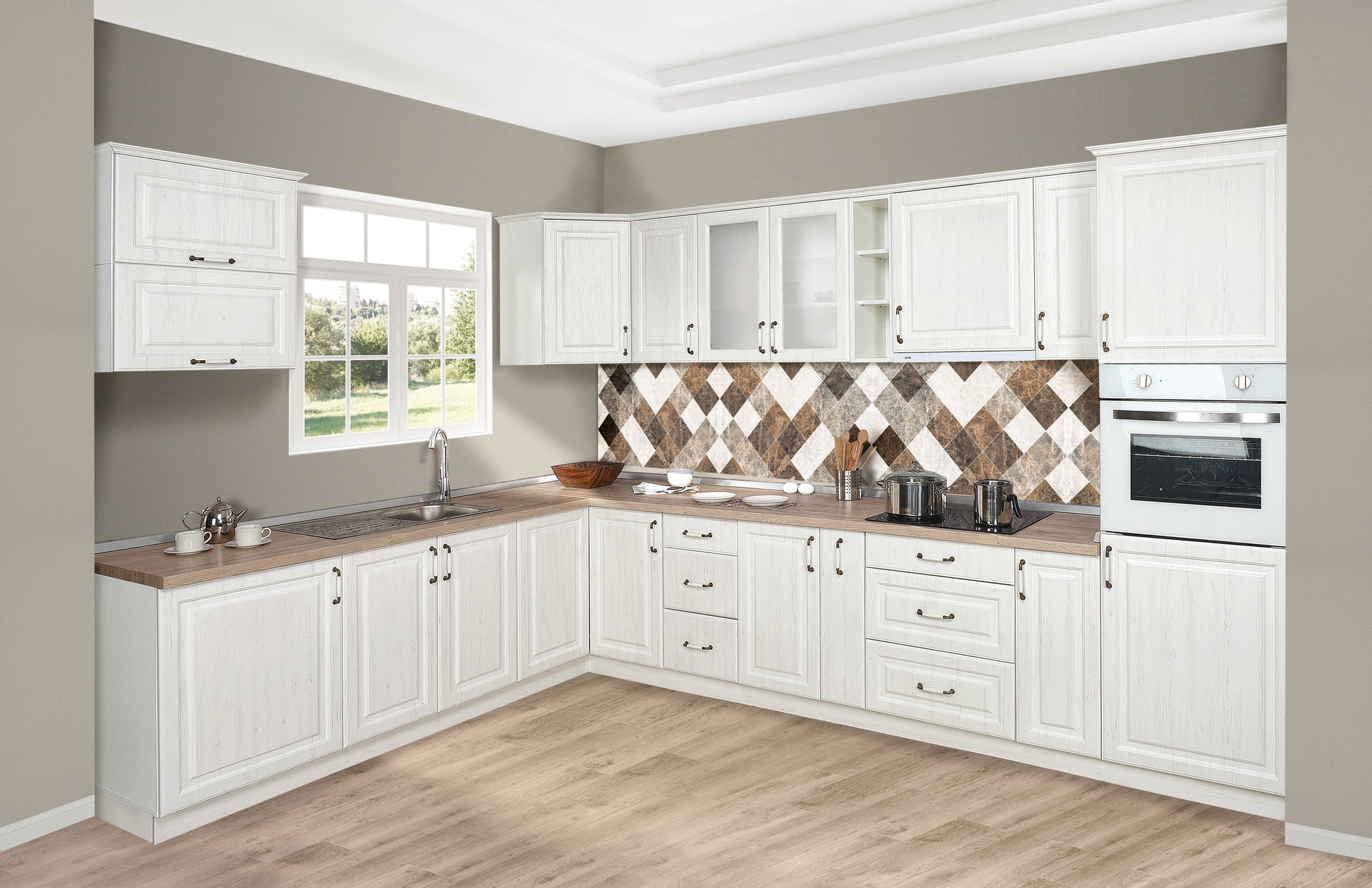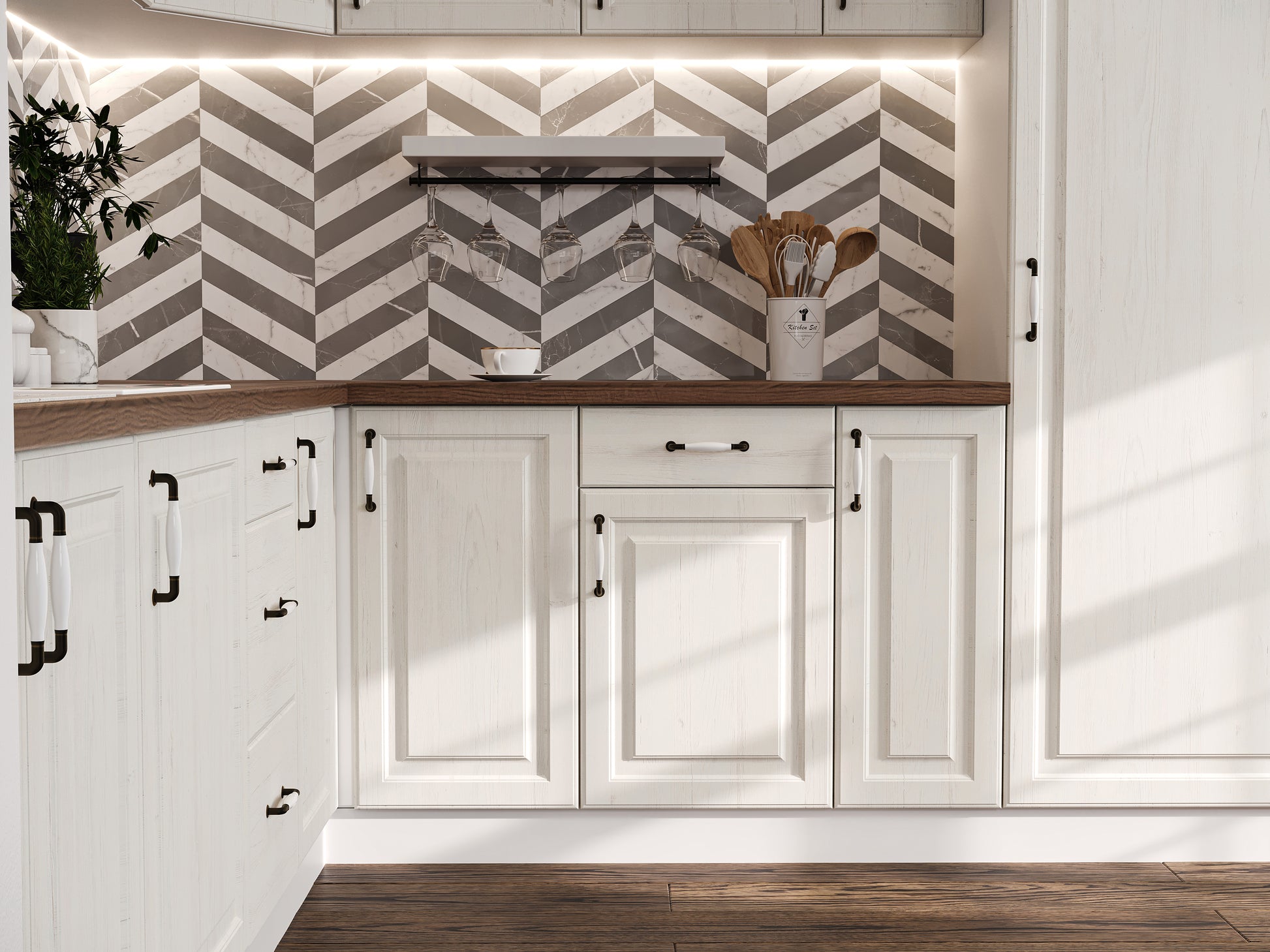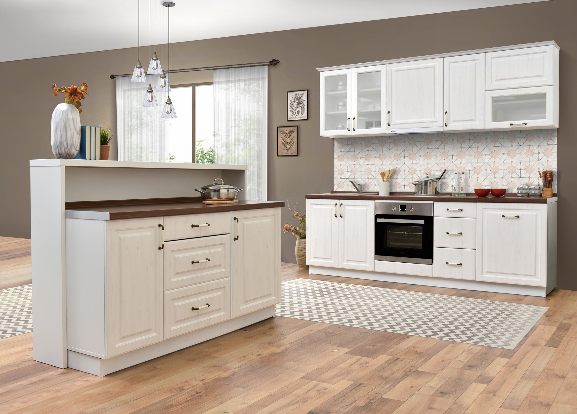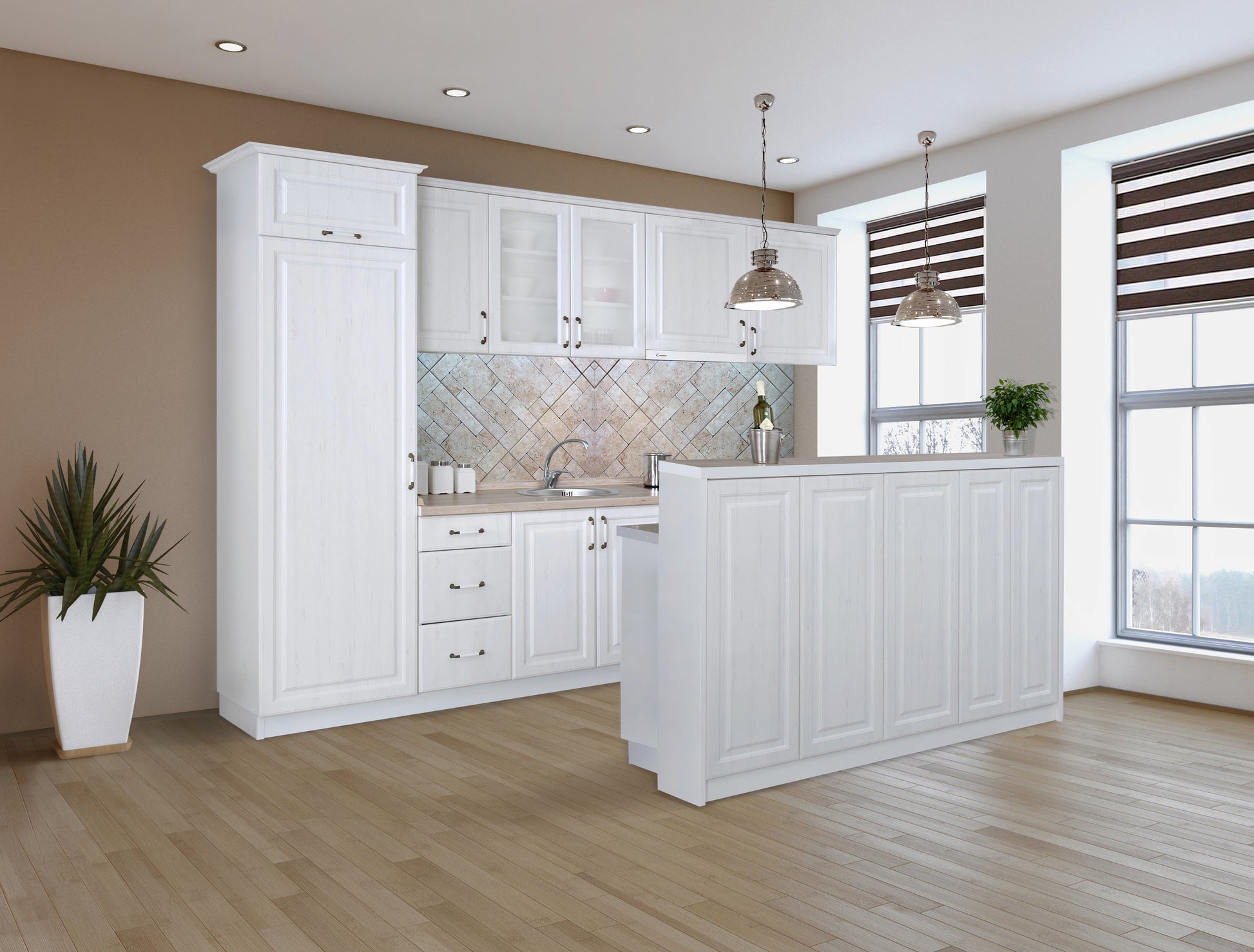 Модулната кухня Rustik в бяло съчетава неподвластна на времето визия с модерна функционалност. Светлите повърхности отразяват светлината и създават усещане за простор, чистота и уют – идеалната база за стилен и подреден дом.